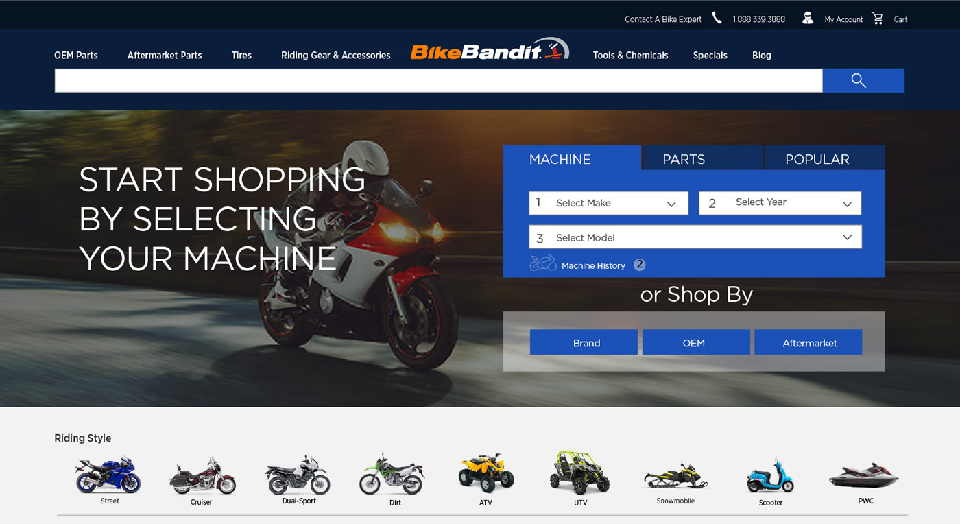 I worked with BikeBandid to help them redesign there website. Part of the redesign was to make shopping for OEM parts and Aftermarket parts the same user experience. Before there were two completely different UX’s for the two.